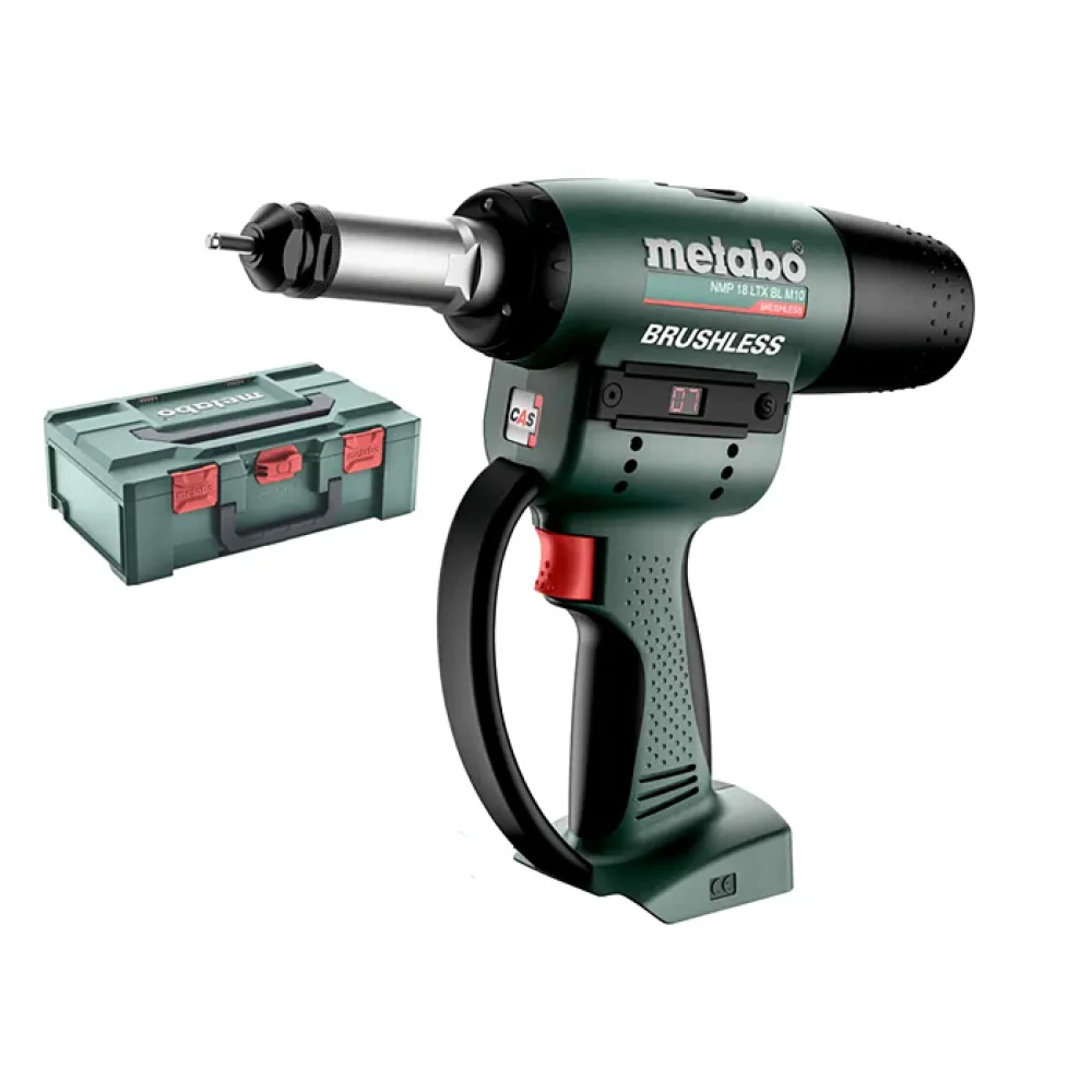 Акумуляторний заклепувальний пістолет Metabo NMP 18 LTX BL M10 - це інструмент, який призначений для встановлення сліпих заклепок. Безщітковий двигун і надійний високоточний редуктор гарантують високу силу витягування, що дає змогу використовувати заклепки до 5 мм. Інструмент характеризується малими розмірами і підходить для роботи в обмежених умовах. Технологія Ultra-M забезпечує максимальну потужність, дбайливе заряджання, оптимальне використання енергії та тривалий термін служби. Заклепувальний пістолет поставляється в кейсі MetaBox, в якому його зручно зберігати і транспортувати.