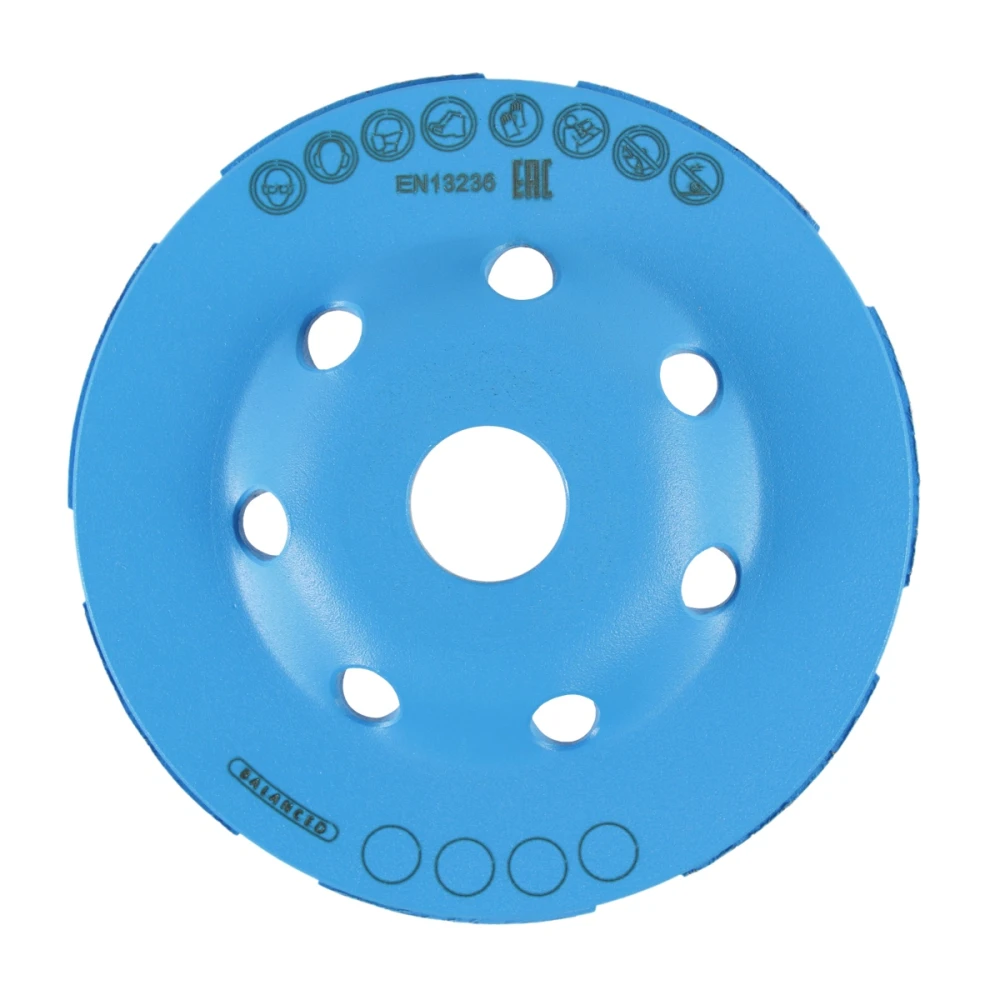 DI-STAR DGS-S 125/22.23 Beton - алмазна фреза представлена в класичному вигляді з дворядним алмазним сегментом. Використовується такий інструмент для грубого шліфування поверхонь зі звичайного і армованого бетону, бетонно-мозаїчних поверхонь і зняття напливу бетону після заливки опалубки. Фреза має чудові швидкісні характеристики шліфування за досить доступної ціни. Це найкраще рішення для домашнього використання або при невеликих обсягах робіт. Фреза має два ряди алмазних сегментів, встановлених на легкий металевий корпус. Застосовується на ручних кутових шліфувальних машинах при шліфуванні без охолодження. Виготовляється в зовнішніх діаметрах 100, 125, 150 і 180 мм з посадковим отвором 22.23 мм.