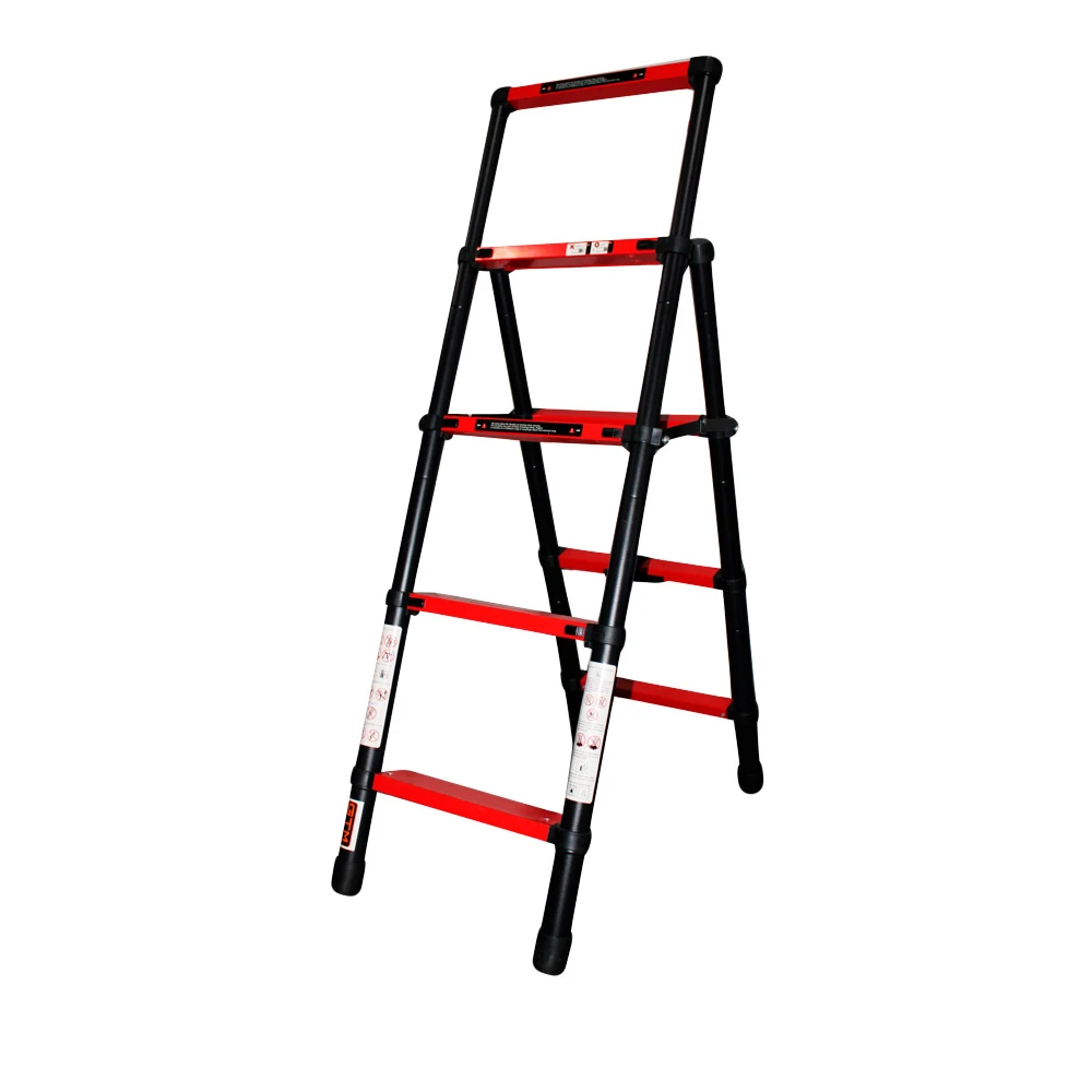 GTM KME5045B - телескопічна алюмінієва драбина у формі двосторонньої А-подібної драбини, яка відмінно підходить як для побутового, так і для професійного використання. У даній моделі драбини максимальна висота до верхньої сходинки регулюється до 105 см.