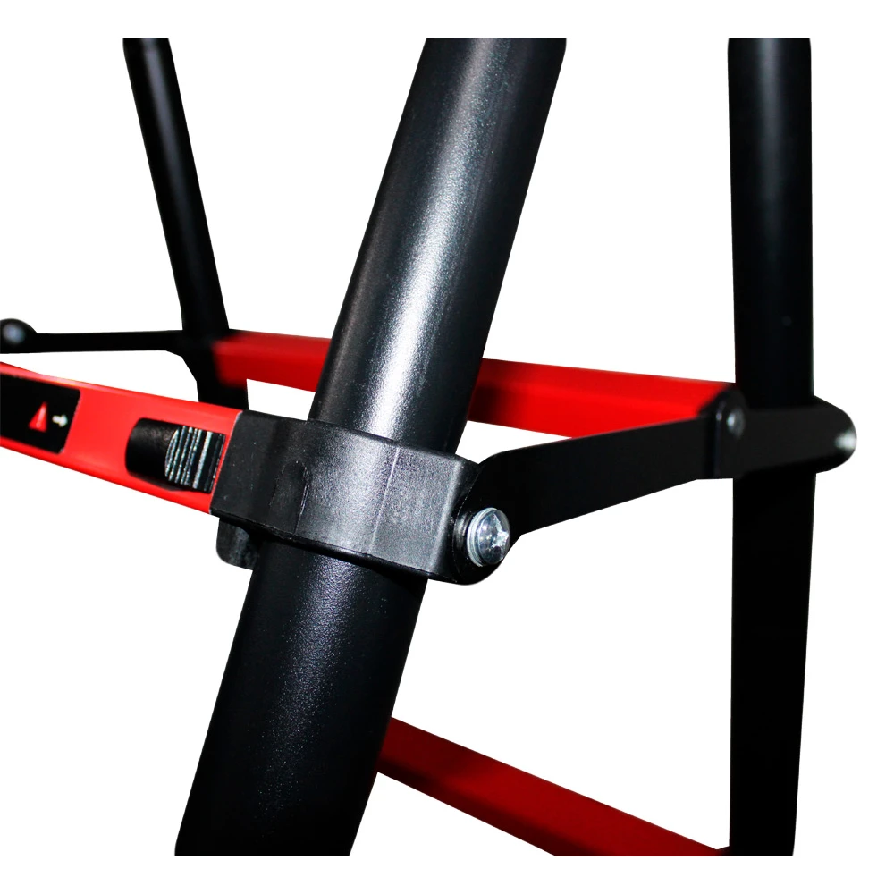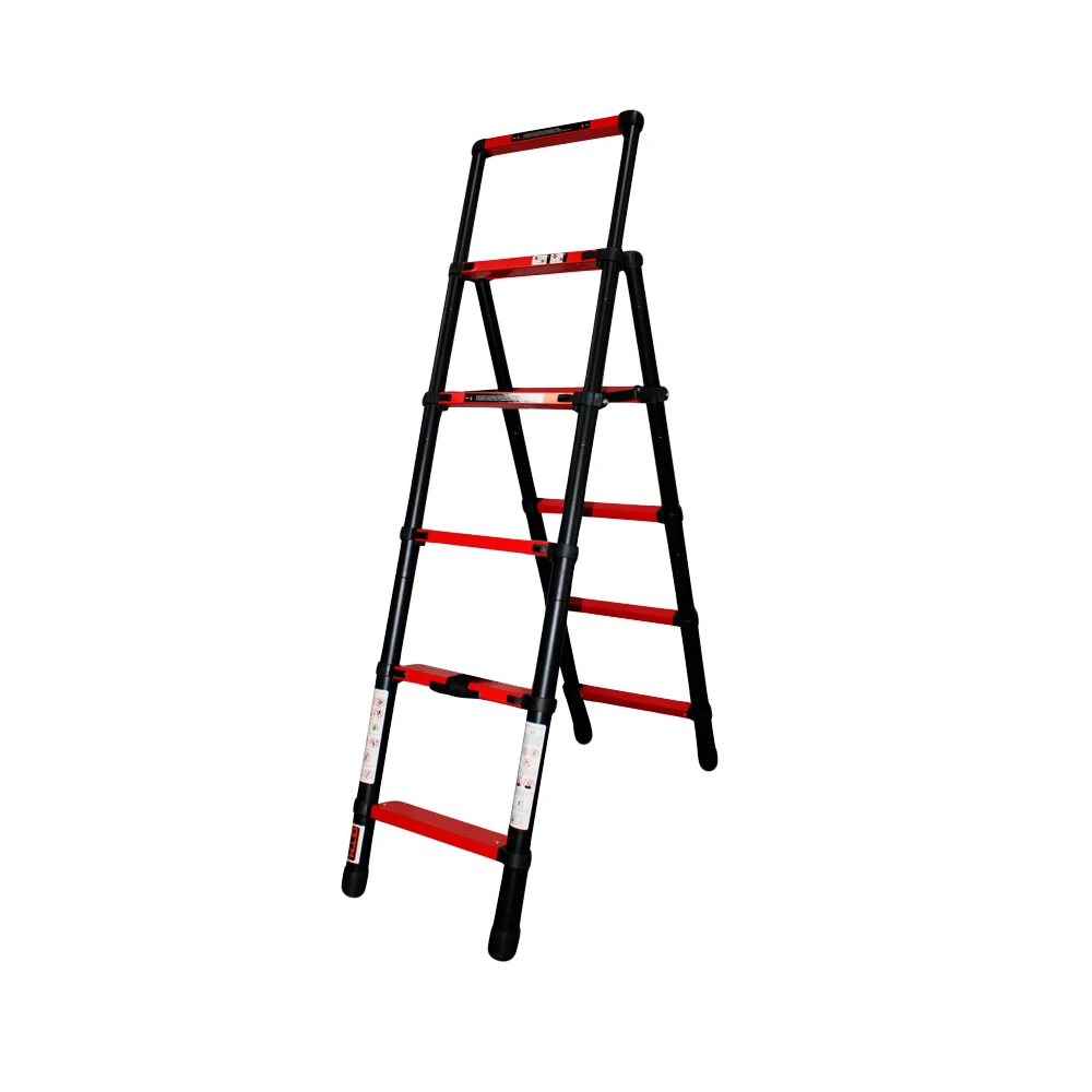 GTM KME5056B - телескопічна алюмінієва драбина у формі двосторонньої А-подібної драбини, яка відмінно підходить як для побутового, так і для професійного використання. У даній моделі сходів максимальна висота до верхньої сходинки регулюється до 132 см.