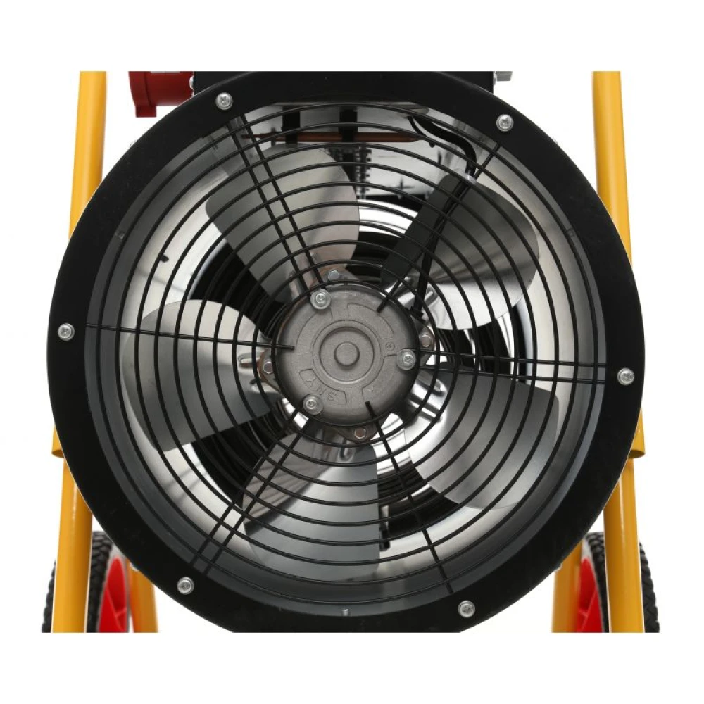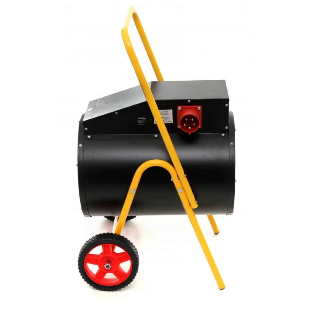 Теплова електрична гармата Kraft Dele KD11726 поставляється в картонній упаковці з колесами для транспортування.