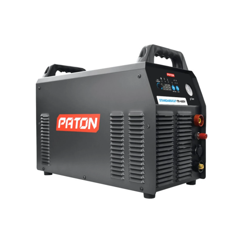 Інверторний плазморіз PATON StandardCUT-70-400V призначений для різання металів і сплавів товщиною до 25 мм плазмовою дугою в повітряному потоці. Даний апарат серії «Standard» є розумним компромісом між потужністю, функціональністю і невеликими габаритними розмірами. За рахунок підвищеної частоти перетворювача, апарат має меншу масу і габаритні розміри в порівнянні з класичним обладнанням. Пневмосистема з двома клапанами дозволяє здійснювати м'який підпал зі зменшеним розбризкуванням металу і підвищує ресурс витратних матеріалів плазмотрона.