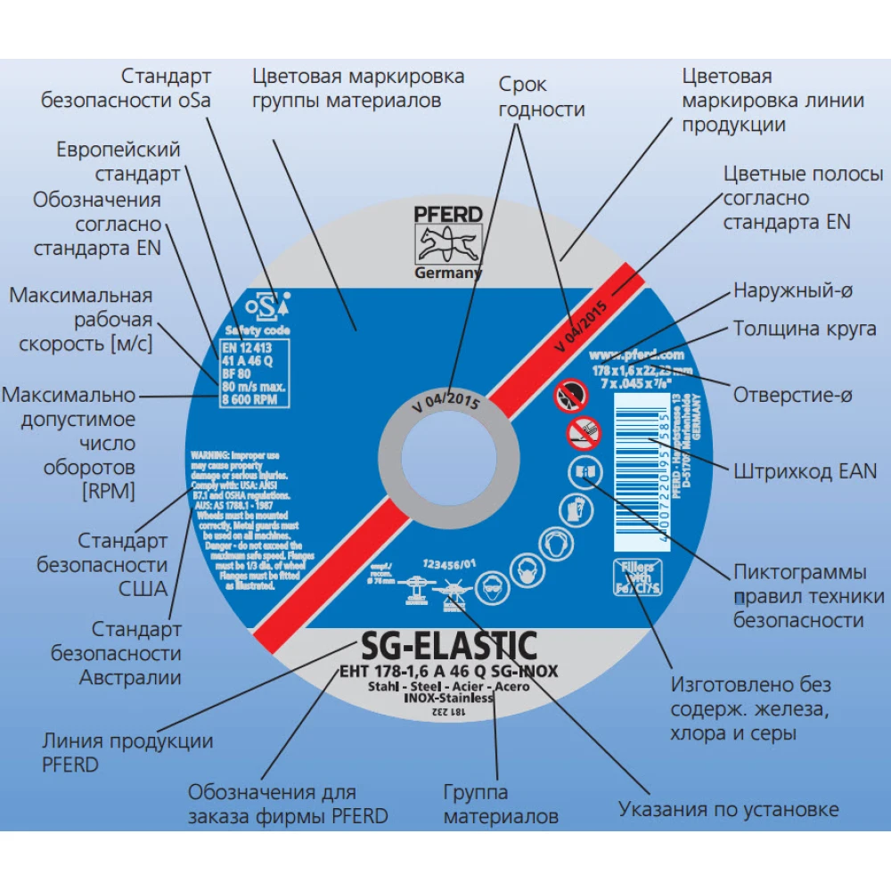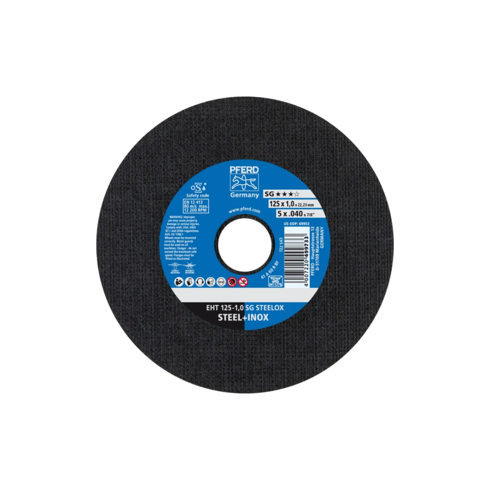 Відрізний круг Pferd 125х1х22 SG-ELASTIC - якісний розхідник для прямих або кутових шліфмашин. З його допомогою болгарка перетворюється на хороший інструмент для різання металу.