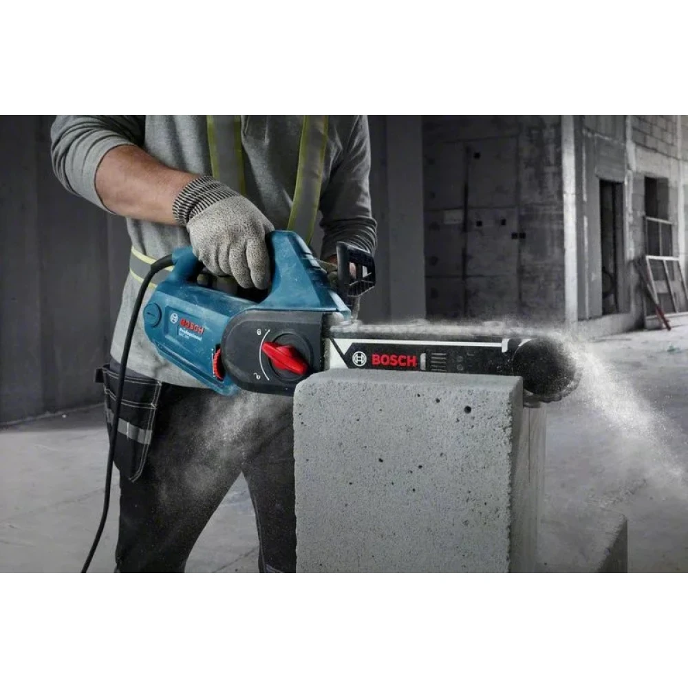 Bosch GAC 250 Professional - спеціально розроблена ланцюгова пила для професійного різання газобетонних блоків під час будівництва. Інструмент обладнаний електричним двигуном із потужністю 1200 Вт. Пила комплектується шиною завдовжки 33,5 см і спеціальним ланцюгом із карбід-вольфрамовими ріжучими елементами.