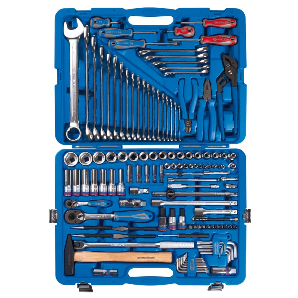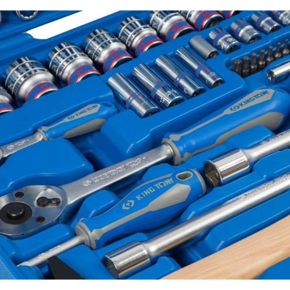 Набір інструментів універсальний King Tony - це комплект слюсарного інструменту для автосервісу. Купити такий набір вигідно для станцій ТО і підприємств, що обслуговують автотранспорт власними силами. Інтерес представляє зручна комплектація - присутні інструменти для роботи з різними елементами кріплення. Є шарнірно-губцеві та ударні приналежності для слюсарних робіт. Цей набір можна назвати успішним у плані комплектації. Тайванський виробник забезпечив його найбільш затребуваним оснащенням для автосервісу, для виконання різних слюсарних операцій. Набір може використовуватися, як самостійна одиниця, або доповнювати собою інший інструмент з обладнанням.