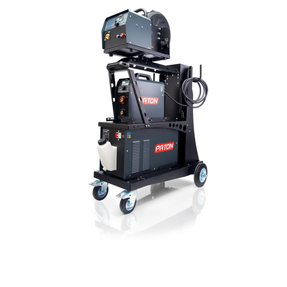 Інверторний цифровий напівавтомат PATON ProMIG-350-15-4 WK – це апарат для промислового використання, призначений для напівавтоматичного зварювання (ПА «MIG/MAG»), ручного дугового зварювання (РДС «MMA»), аргонодугового зварювання (АРГ «TIG»), на постійному струмі, в середовищі захисних газів і сумішей. В апараті ProMIG-350-15-4 реалізований повністю цифровий спосіб управління, за рахунок чого забезпечуються його багатофункціональність і широкі можливості в точному налаштуванні режимів зварювання. Підвищений показник тривалості навантаження на номінальному струмі до 350 А, дозволяє працювати будь-якими електродами діаметром від 1.6 мм до 6 мм, а також проводити напівавтоматичне зварювання суцільним дротом діаметром від 0.6 до 1.4 мм. Завдяки двокорпусному виконанню, блок подачі дроту можна відокремити від джерела струму за допомогою кабелів комунікації різної довжини (1.5, 10 м) на значну відстань від джерела струму і більш зручно працювати на складних або об'ємних металевих конструкціях, а також в режимі ММА і TIG.