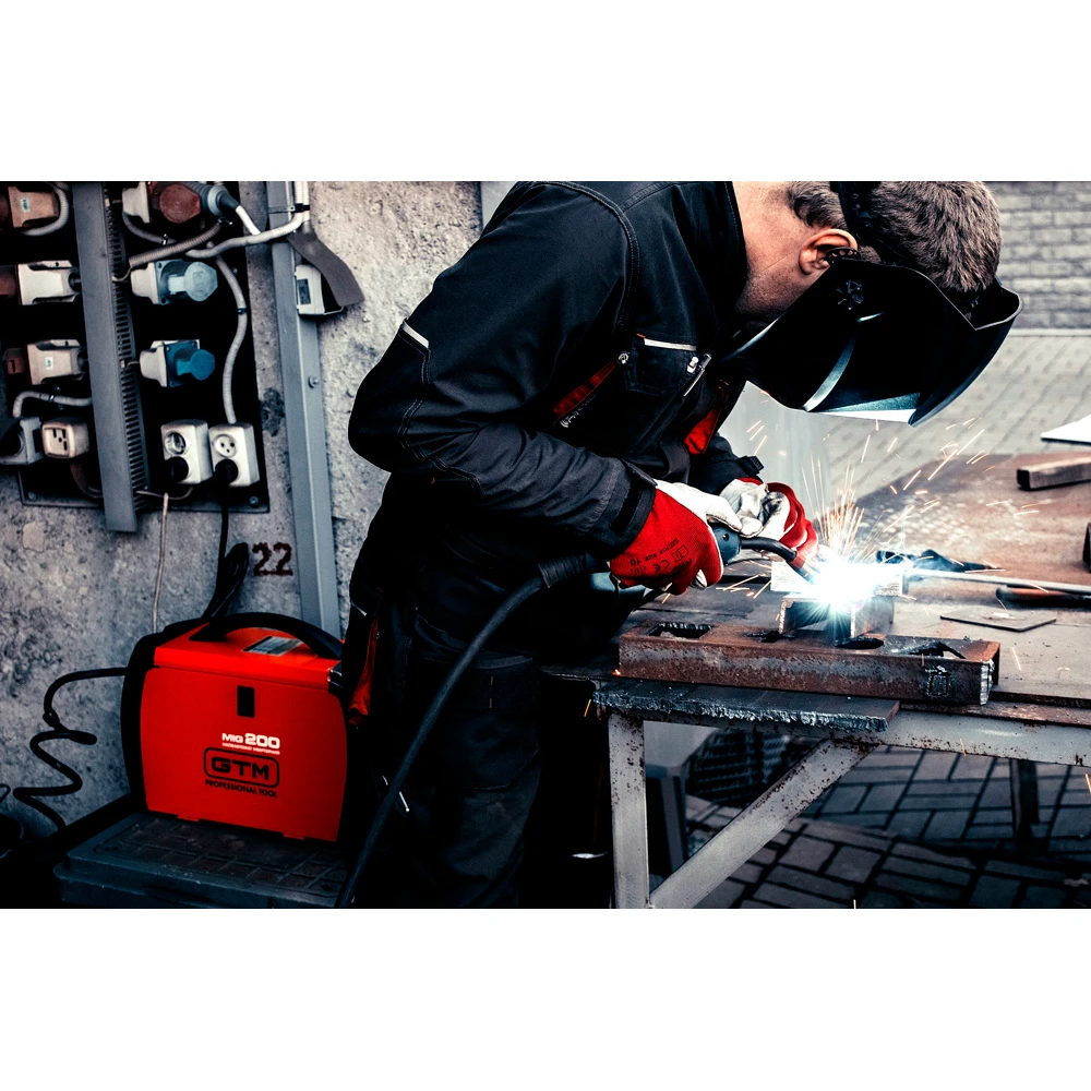GTM MIG-200ES LED - інверторна установка для напівавтоматичного зварювання MIG чорних металів у середовищі захисних газів за допомогою зварювального дроту. Крім основного режиму MIG, є режим ручного ММА та аргонодугового зварювання TIG. Конструктивно напівавтомат складається з 3 блоків: блоку живлення, блоку керування та силового блоку. Таке компонування забезпечує більшу надійність, ремонтопридатність та ефективне охолодження.