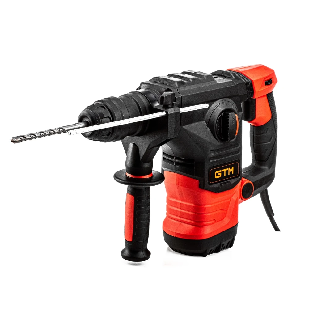 Перфоратор GTM RH32/1000EV використовує потужний та компактний колекторний електродвигун на 1050 Вт, який демонструє відмінну енергоефективність та високу стійкість до перевантажень. Перфоратор має порівняно невеликі габаритні розміри та відноситься до сімейства напівпрофесійного електроінструменту GTM, орієнтованого на виконання значного обсягу монтажних, демонтажних чи будівельних робіт. Основним робочим режимом інструменту є свердління з ударом із силою 5 Дж, при якому він здатний швидко створювати отвори діаметром до 32 мм у міцних марках бетону, штучному/натуральному камені, цеглі та інших твердих мінеральних матеріалах.