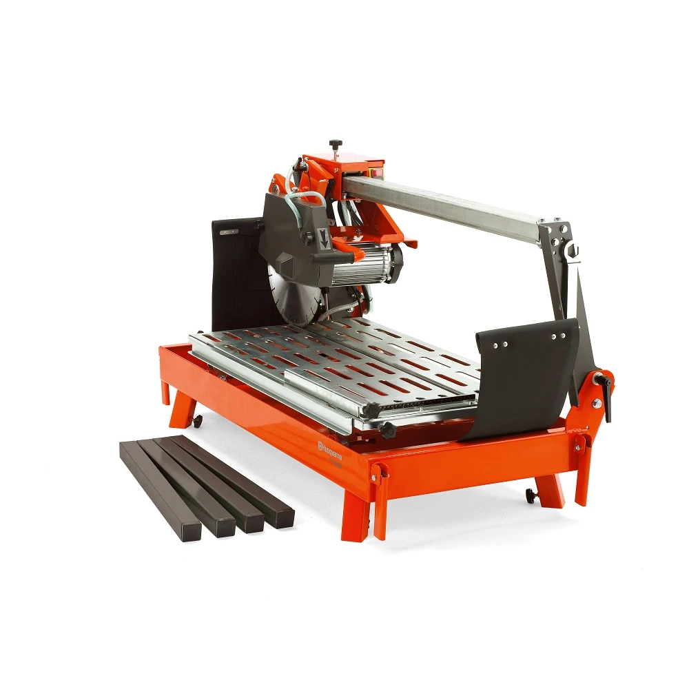 Husqvarna TS 100 R - ефективний універсальний плиткоріз з високою продуктивністю для різання всіх видів цегли та будівельних блоків. Верстат призначений для різання довгих шматків матеріалу до 1 м завдяки висувній направляючій. У цій моделі досягається максимальна глибина пропилу 105 мм за один прохід або до 210 мм при ступінчастому різанні. Можна легко виконувати врізне або косе пиляння під кутом 45 градусів, що забезпечує максимальну універсальність.