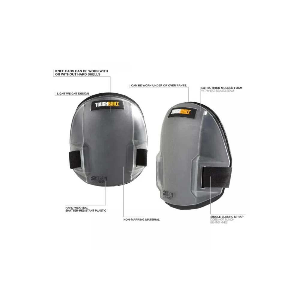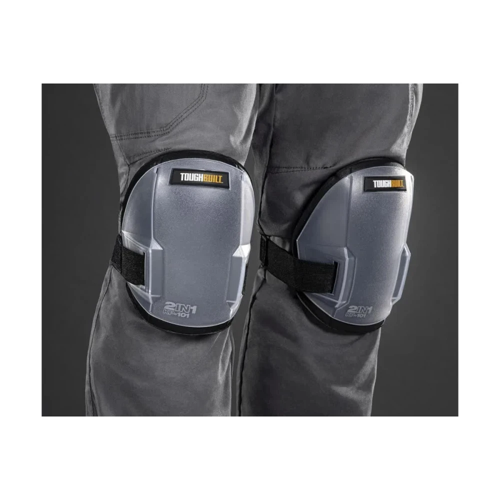 Колінні щитки ToughBuilt® 2 в 1 - це універсальне легке рішення. Наколінники можна носити як із жорсткими накладками, так і без них. Жорсткі накладки виготовлені з міцного, зносостійкого, ударостійкого пластику для використання на пересіченій місцевості. Товсті формовані накладки виготовлені з м'якої, міцної, немаркої піни, що дає змогу зберегти більш чутливі поверхні без подряпин. Зручний одинарний еластичний ремінець охоплює коліно й дає змогу уникнути защемлення за коліном, забезпечуючи комфорт упродовж усього дня.