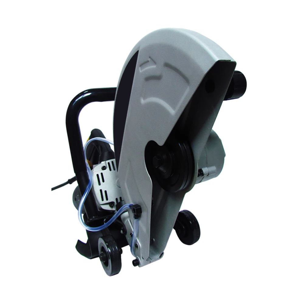 Электрорез GTM DC350 предназначается для резки кирпичных, бетонных, железобетонных и прочих конструкций при помощи алмазного диска. На инструмент устанавливается стандартный алмазный круг диаметром 355 мм и с посадочным отверстием 25,4 мм. Глубина реза регулируется специальной планкой, которую можно установить на корпус, и достигает 117 мм. В электрорезчик установлен качественный двигатель мощностью 2800 Вт, благодаря чему на холостом ходу скорость вращения диска достигает 4800 об/мин. Ротор и статор двигателя дополнительно бронированы полиамидной нитью, что дает защиту от пыли при использовании и значительно повышает рабочий ресурс. Щётки в двигателе при износе можно заменить без необходимости полного разбора корпуса. Для работы с алмазными дисками, требующими при работе водяное охлаждение, в комплекте идет мининасос мощностью 30 Вт с производительностью 8 л/мин и трубка для подачи воды. Для кругов, которые режут без подачи воды, предусмотрен адаптер для подключения строительного пылесоса.