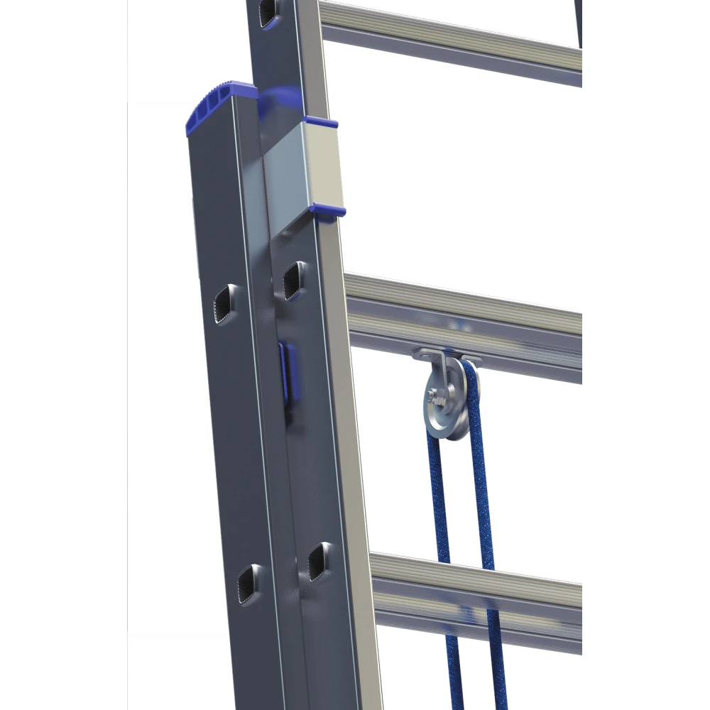 Лестница Elkop VHR L 2x22 - двухсекционная алюминиевая лестница, которая отлично подходит для профессионального использования. Данная модель оснащена специальным канатным механизмом и парой колес, что позволяет легко выставить ее вдоль стены на большую высоту.
