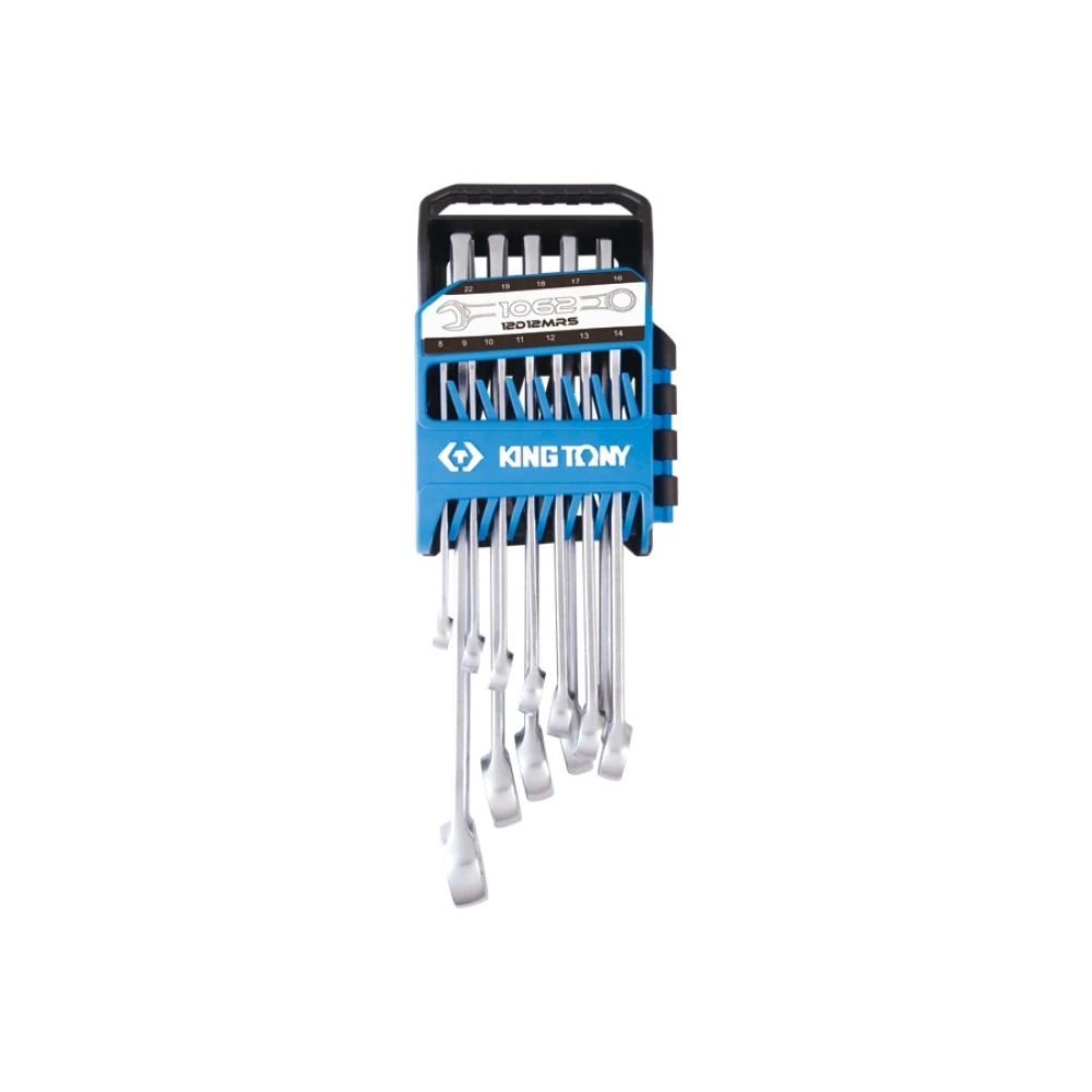 Набор гаечных ключей King Tony 8-22 мм- состоит из 12 комбинированных ключей для закручивания или выкручивания болтов, гаек и прочих резьбовых соединений. В комплект входят ключи King Tony серии Treoton размером от 8 до 22 мм, которые отличаются уменьшенным весом благодаря особой конструкции. Набор поставляется в держателе из ABS-пластика с заранее промаркированными размерами ключей.