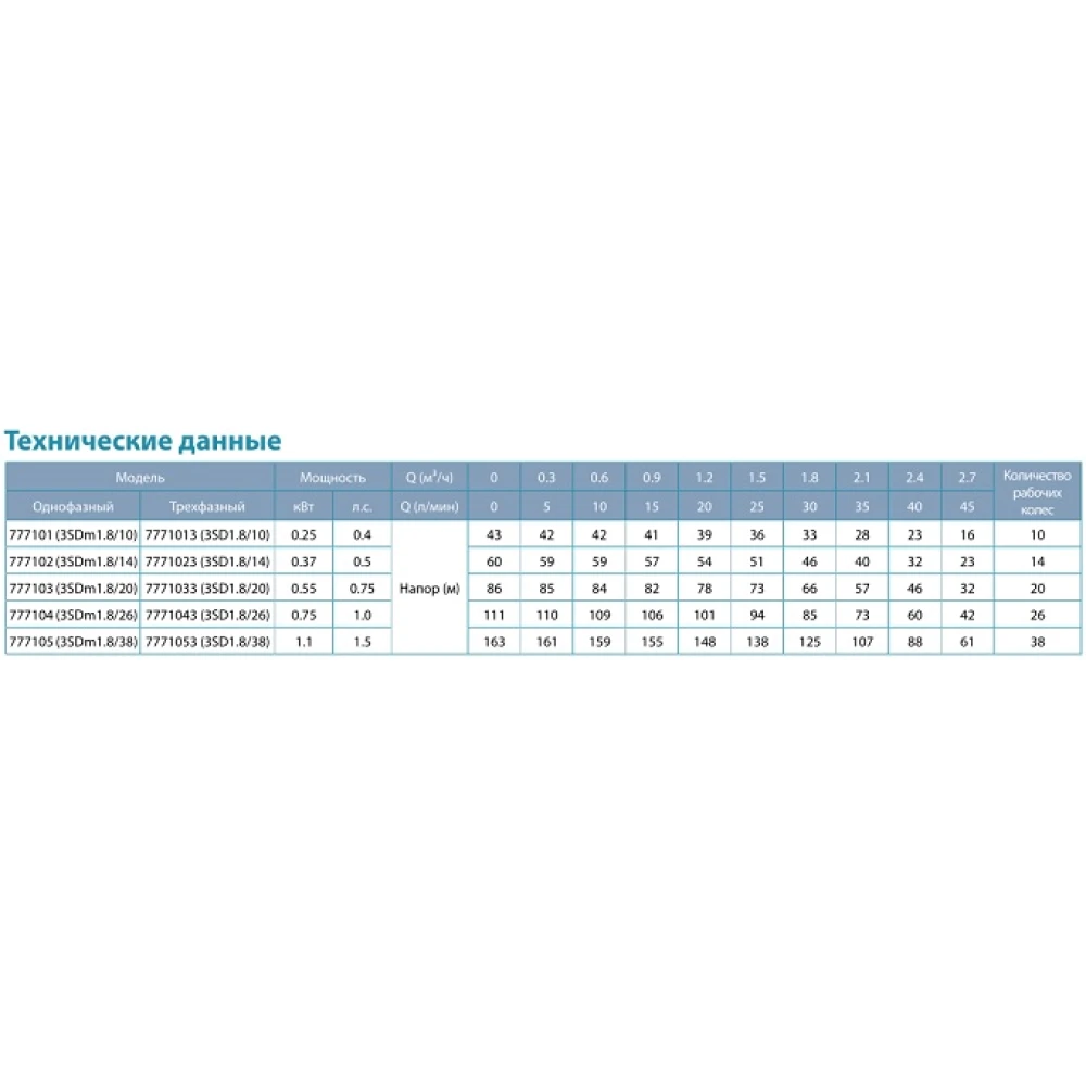 Погружной насос Aquatica DONGYIN 3SDm1,8/38 - оборудование для перекачивания жидкости с большой глубины. Данный тип насоса зачастую устанавливается в буровых скважинах, шахтных колодцах, технологических ёмкостях. Данная модель насоса может погружаться под зеркало воды на глубину до 60 м. Для эффективного перекачивания чистой воды, диаметр скважины должен быть около 93 - 110 мм
