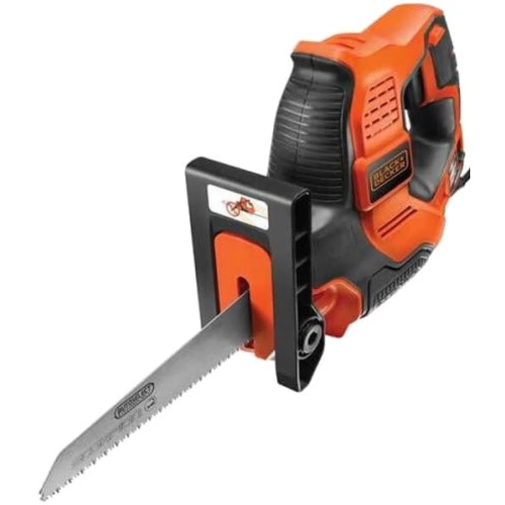 Встроенный мощный двигатель на 500 Вт позволяет работать в постоянном режиме с большими нагрузками. Редуктор имеет защиту от влияния пыли, грязи и опилок. Благодаря удобной форме корпуса и малому весу, пила позволяет работать без осложнений в любом положении. Сабельная пила Black+Decker RS890K поставляется в кейсе.