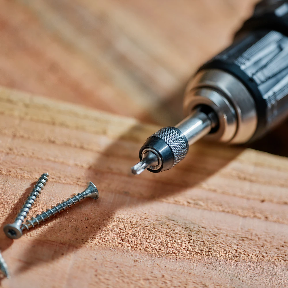 Универсальный патрон обеспечивает быструю замену насадок и бит