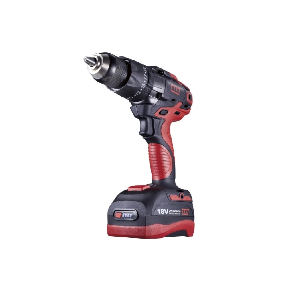 Mighty Seven DD-20502 - беcщёточная дрель-шуруповерт повышенной мощности, которая предназначается для постоянного профессионального использования. Питается от Li-Ion аккумуляторов с напряжением 18 В. В шуруповерт встроен двухскоростной редуктор с металлическими шестернями, что значительно увеличивает срок службы инструмента. На первой скорости 450 об/мин DD-20502 развивает крутящий момент до 67.8 Нм, что позволяет закручивать крепежи. На второй скорости 1750 об/мин пользователь может эффективно сверлить различные материалы: дерево, металл и тд. Встроенная защитная электроника предохраняет аккумулятор от перегрузки, перегрева и глубокой разрядки. Шуруповерт комплектуется 13 мм быстрозажимным металлическим патроном с автоматической блокировкой шпинделя.