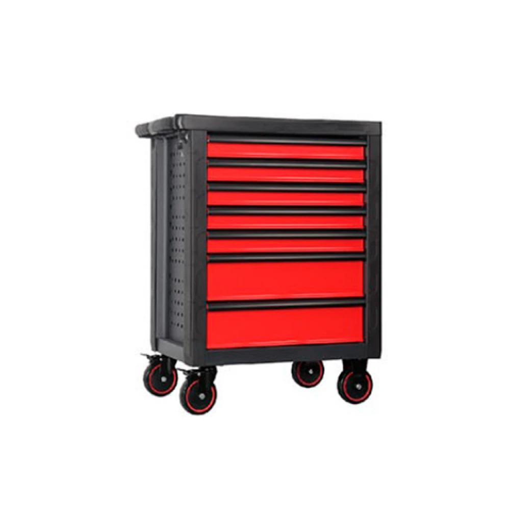 Ящик-тумба для инструментов GTM 887 - металлический контейнер для удобного хранения ручных инструментов в автомобиле, гараже, дома, мастерской или на даче. Данная модель состоит из семи отделений разного размера секций. Для более легкого перемещения ящик оснащен четырьма колесами.