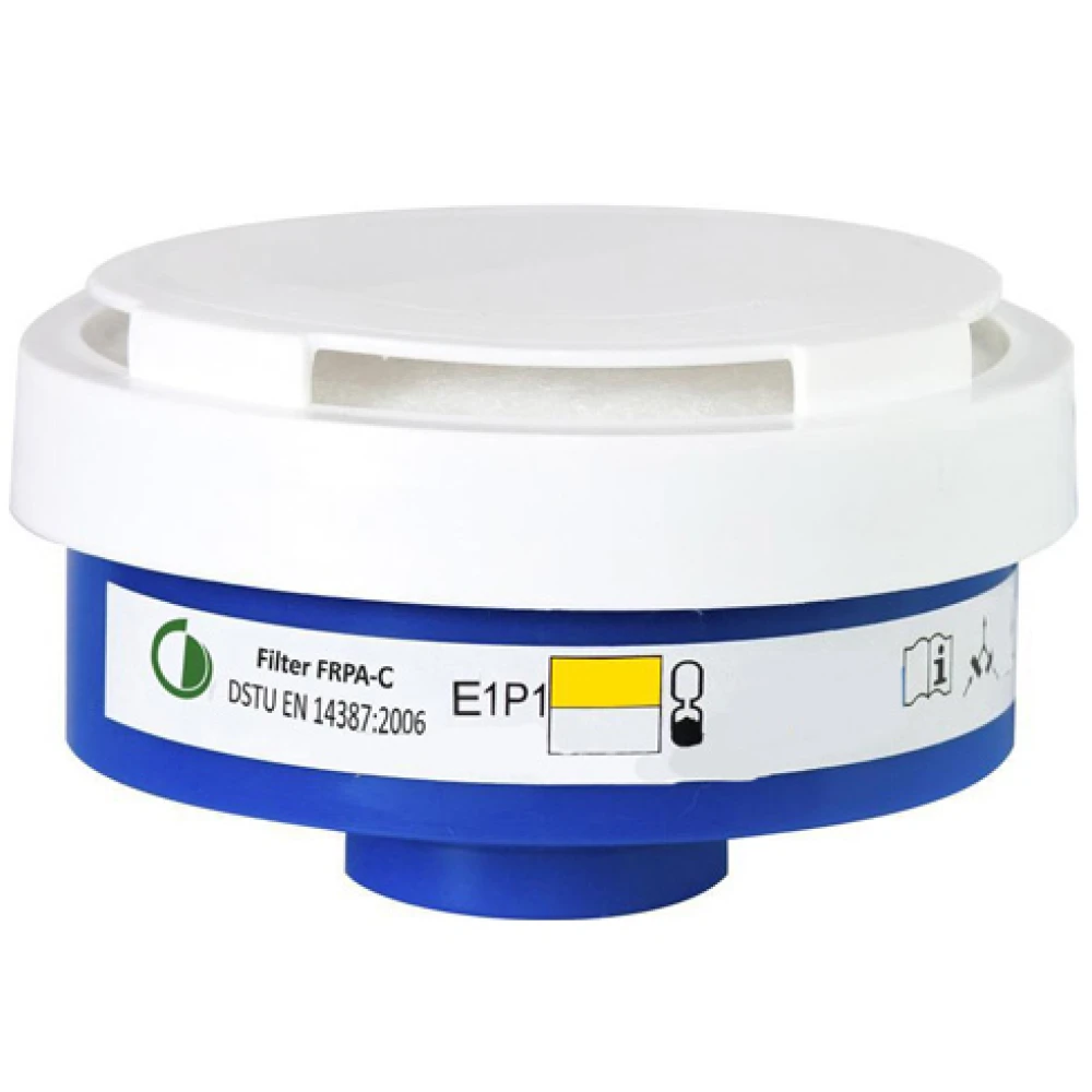 Фильтр комбинированный Standart ФРПА-С Е1Р1 - воздушный фильтр, который подсоединяется к полумаске Standart РПА-ДЕ для очистки (хемосорбции) вдыхаемого воздуха от аэрозолей, кислых газов и паров кислот (сернистый ангидрид, соляная, серная, азотная, уксусная кислота, хлористый, бромистый, фтористый углероды). Данные фильтры используются при концентрации газов (паров) до 0.1 % объема (1000 ppm), аэрозолей до 4 ПДК.