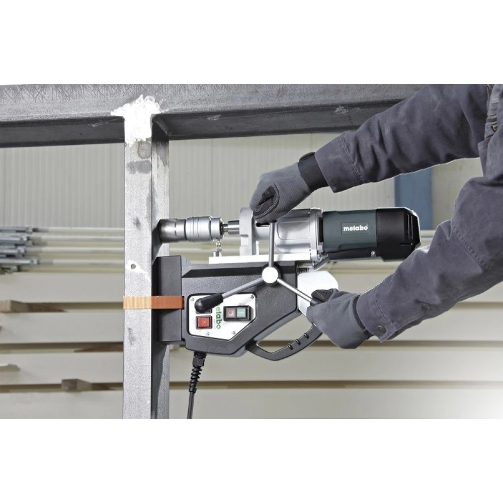 Свердлильний верстат Metabo MAG 50 на магнітній станині. Завдяки великому ходу шпинделя, високонадійному мотору і неабияким технічним характеристикам можемо ефективно використовуватися для свердління металоконструкцій.