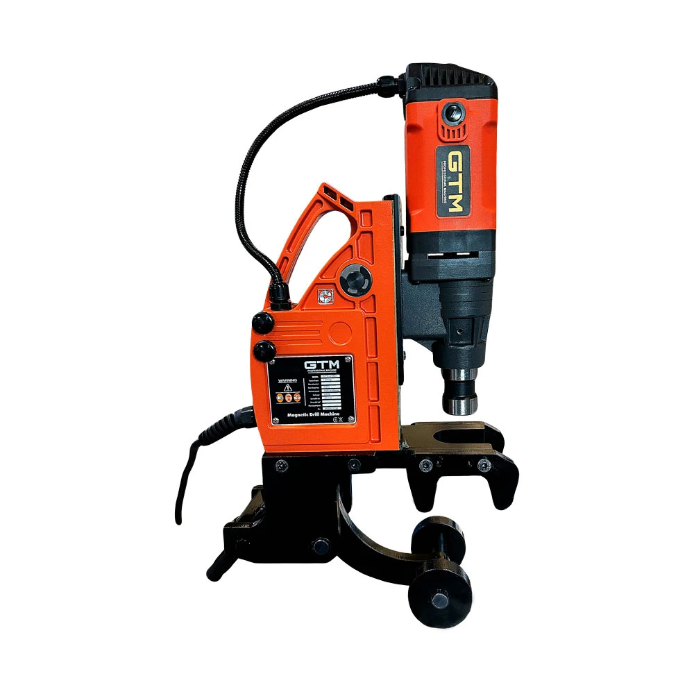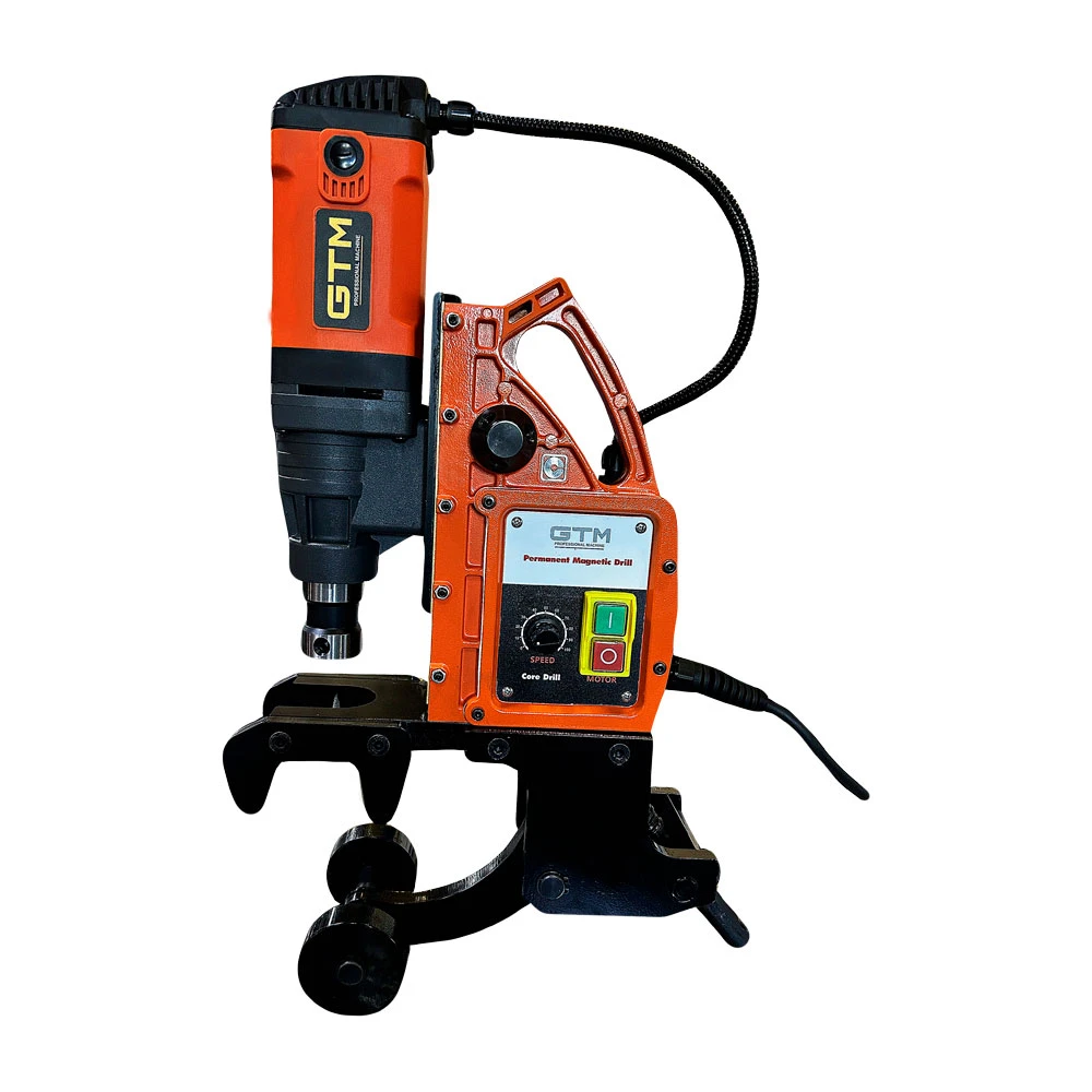 GTM SCY-45RAIL - портативний свердлильний верстат з електромагнітом в основі корпусу. Ця модель спеціально розроблена для свердління отворів у рейках різного розміру. Верстат застосовується в залізничному будівництві для виконання отворів, наприклад, під болти заземлення, рейкову контактну систему та ізоляційні стики. Завдяки компактним розмірам і надійній затискній системі, легко позиціонується і встановлюється на залізничну рейку для подальшого свердління металу.
