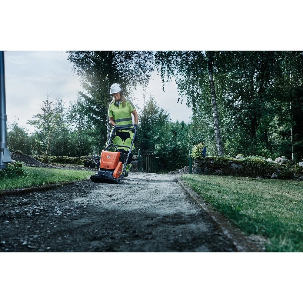 Husqvarna LF80 LAT — це швидкодіюча віброплита, призначена для ефективного ущільнення асфальту та ґрунту. Вона ідеально підходить для ремонтних та експлуатаційних робіт, таких як ремонт під'їзних доріг та парковок. Великий резервуар для води має збільшену кришку, що дозволяє рідше та швидше доливати воду. Плита легко чиститься, не залишає слідів на дорожньому покритті та використовує воду, яка є в наявності на місці.